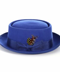 The Royal Blue Wool Felt Pork Pie Hat, a timeless accessory that combines elegance and style. Crafted from premium fur felt, this hat features a distinctive flat crown and a narrow brim, providing a sophisticated yet casual look.