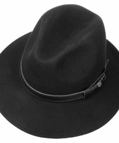 With its elegant colour contrast, the traveller hat can definitely be worn on special occasions on warm summer days. The easy-care viscose material is also known as Toyo straw, thanks to its special look. It gives the hat a light and airy charm that is perfectly complemented by the flat brim. The wide grosgrain ribbon provides the classic frame.