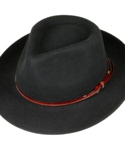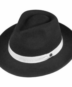 The unmistakable Bogart style lends city strollers and night owls an individual look. The wide grosgrain ribbon and classic circular indent are the distinguishing marks of this handsome hat. Nor are the features of this wool felt hat to be sneezed at: The high-quality Fedora is both crushable and water-resistant and is sure to quickly become a hit model.