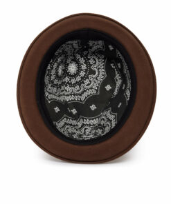 Our Classic Pork Pie Fedora Hat, adorned with a solid color bow hat band for an added touch of sophistication.