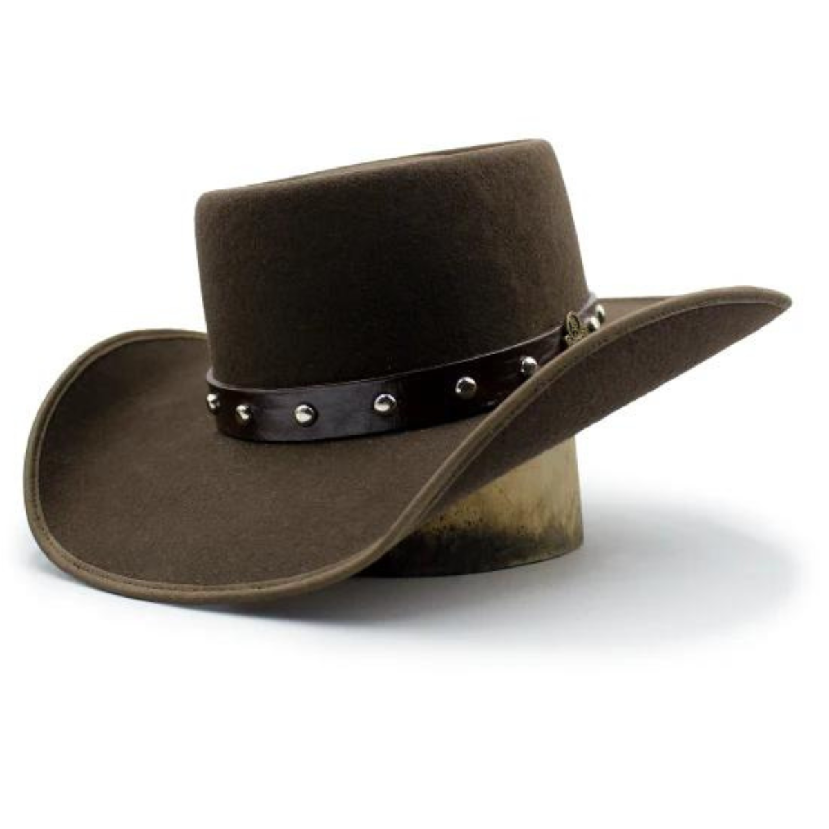 - Hatband: Custom 1/2″ leather with conchos