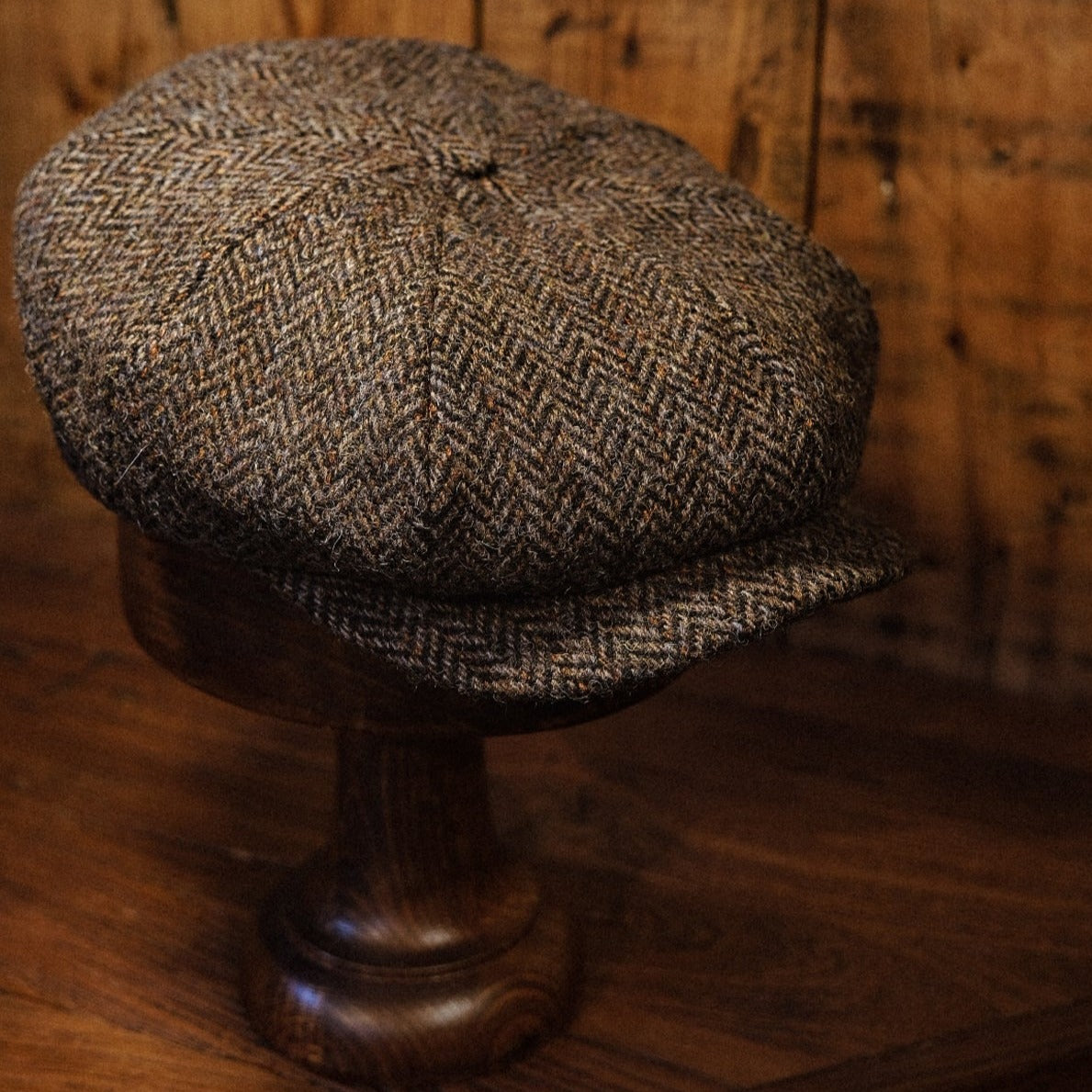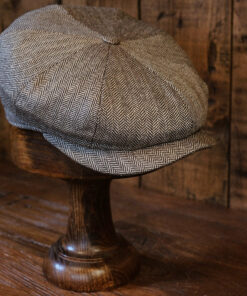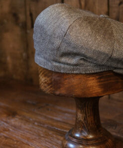 Eight Piece Grey Herringbone Linen Newsboy Cap