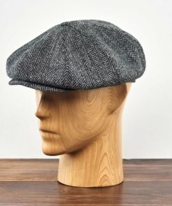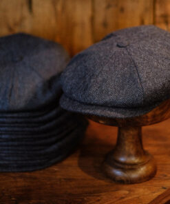 The “Eight Piece Navy Hopsack Linen Newsboy Cap”. Made from high-quality linen material, this cap features a unique eight-panel design that gives it a stylish and sophisticated look. Whether you’re dressing up for a special occasion or simply looking to elevate your everyday outfits, this newsboy cap is the perfect accessory. With its comfortable fit and timeless charm, it’s sure to become a staple in your collection.