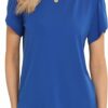 - Crafted from a soft, lightweight fabric that is gentle on the skin, provides a cool feel to the touch, and ensures ultimate comfort. Made of 95% polyester and 5% spandex, this blouse is non-see-through for added confidence