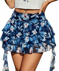 - Design: This short mesh skirt features multi-layer ruffle trim and elastic high waisted waistband, A-line flared silhouette and waist belt design, soft and skin-friendly lining