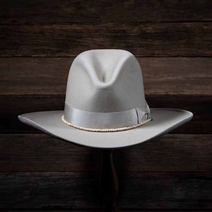 The Old West Cowboy Hat is constructed of quality fur felt and features a sloped crease crown, interior quality sweatband.
