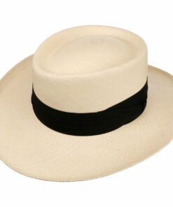This elegant straw hat is a real classic for the summer. It is exclusively made purely by hand from 100% Panama straw and comes with a black trim band that looks true to the style. With UV factor 50+ protection, the lightweight sun hat prevents sunburn on the neck and face, even when you’re on holiday in hot climes. The absorbent stretch lining band adjusts to the shape of your head and ensures the perfect fit.