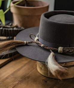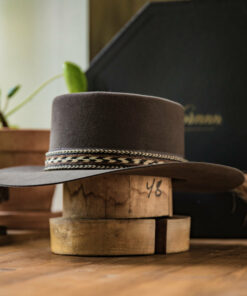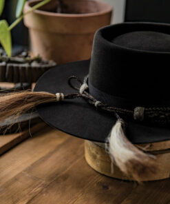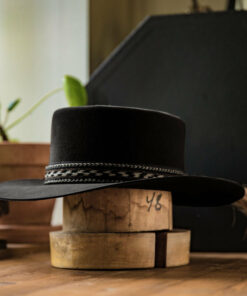 The “Western Wool Felt Pork Pie Hat” features a stately 4″ gambler crown and 3″ brim. A tooled hat band augments its rugged style and a quality sweatband, and full satin liner provide a secure and comfortable fit.