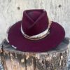 It has a low profile Gus creased crown that is 4.75″ in the back and slopes to 4.25″ in the front. The 3.75″ brim has a small pencil curl on the sides and a nice slope in the front and back. It is topped off with an antique looking leather hat band. We really like this one with its unique look and versatility.