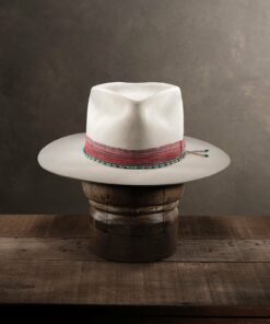 It has a low profile Gus creased crown that is 4.75″ in the back and slopes to 4.25″ in the front. The 3.75″ brim has a small pencil curl on the sides and a nice slope in the front and back. It is topped off with an antique looking leather hat band. We really like this one with its unique look and versatility.